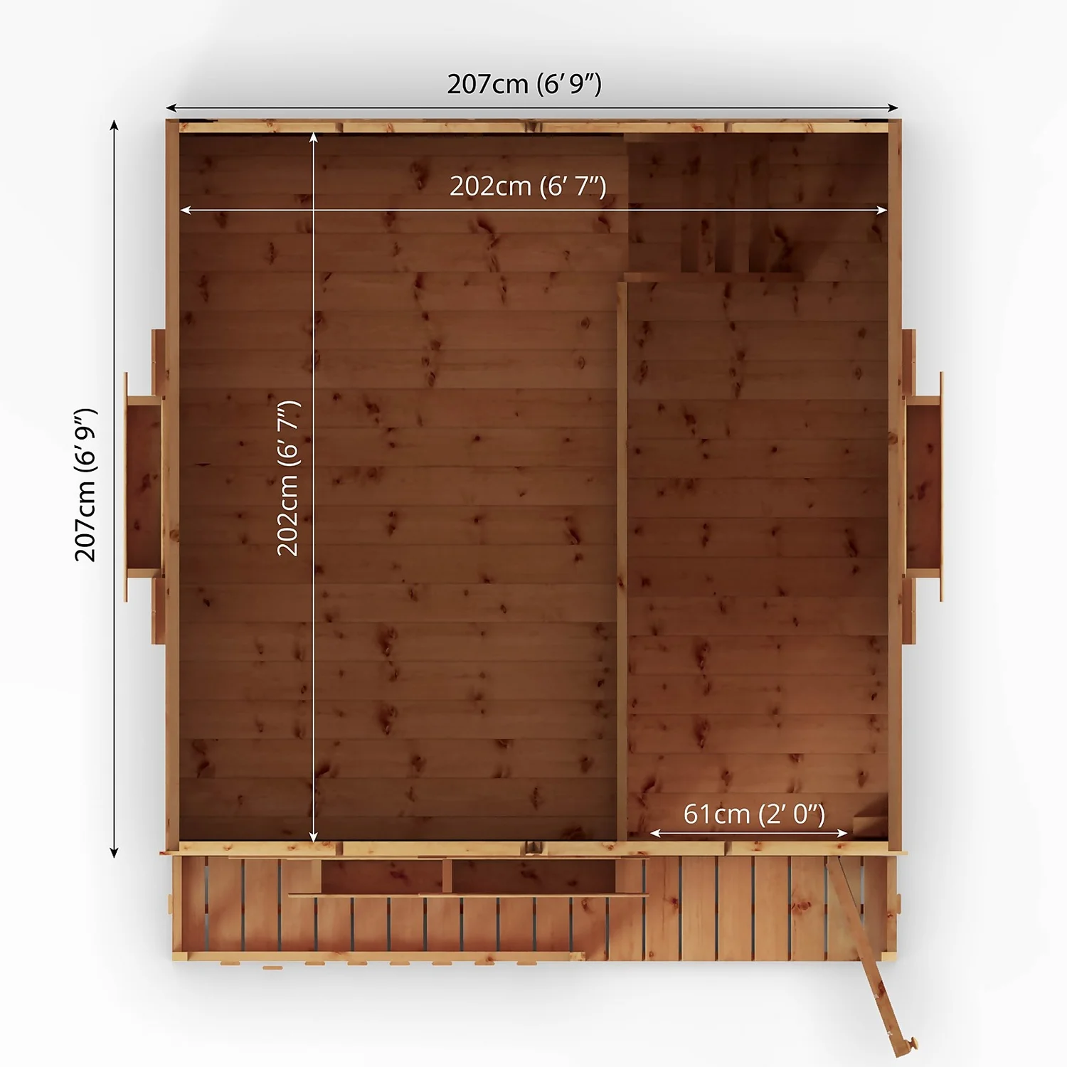 • Tongue & Groove Roof and Floor – Heavy duty interlocking boards create a premium, strong and robust finish