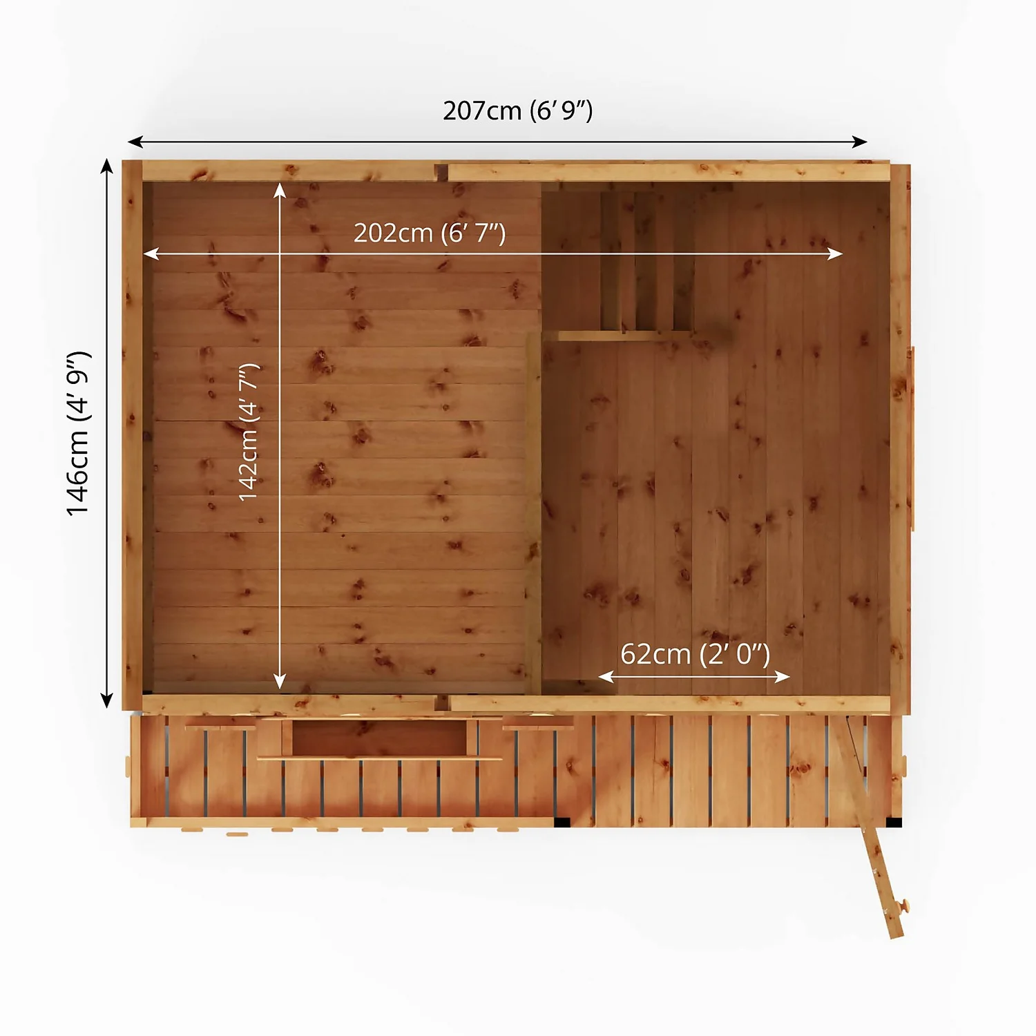 • Tongue & Groove Roof and Floor – Heavy duty interlocking boards create a premium, strong and robust finish