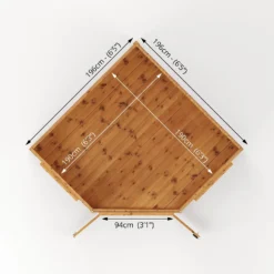 The Ribble corner summerhouse is a unique size summerhouse, ideal for the corner of any garden, great for those looking for somewhere to relax and unwind during the summer months. The spacious and light interior is great for large pieces of furniture, comfy chairs or dining sets, to create the perfect garden retreat. Boasting four large styrene glazed windows and half glazed double doors, the interior is a bright and welcoming.