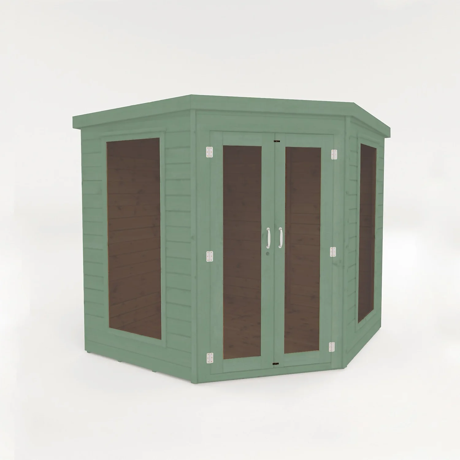 Handmade in Nottinghamshire and exclusive to Country Living, the Ribble 7 x 7 corner summerhouse painted in the timeless Aurora Green. will blend charmingly into your garden to create the perfect oasis. We use a premium paint that offers exceptional durability and protects your garden building from the get go!
