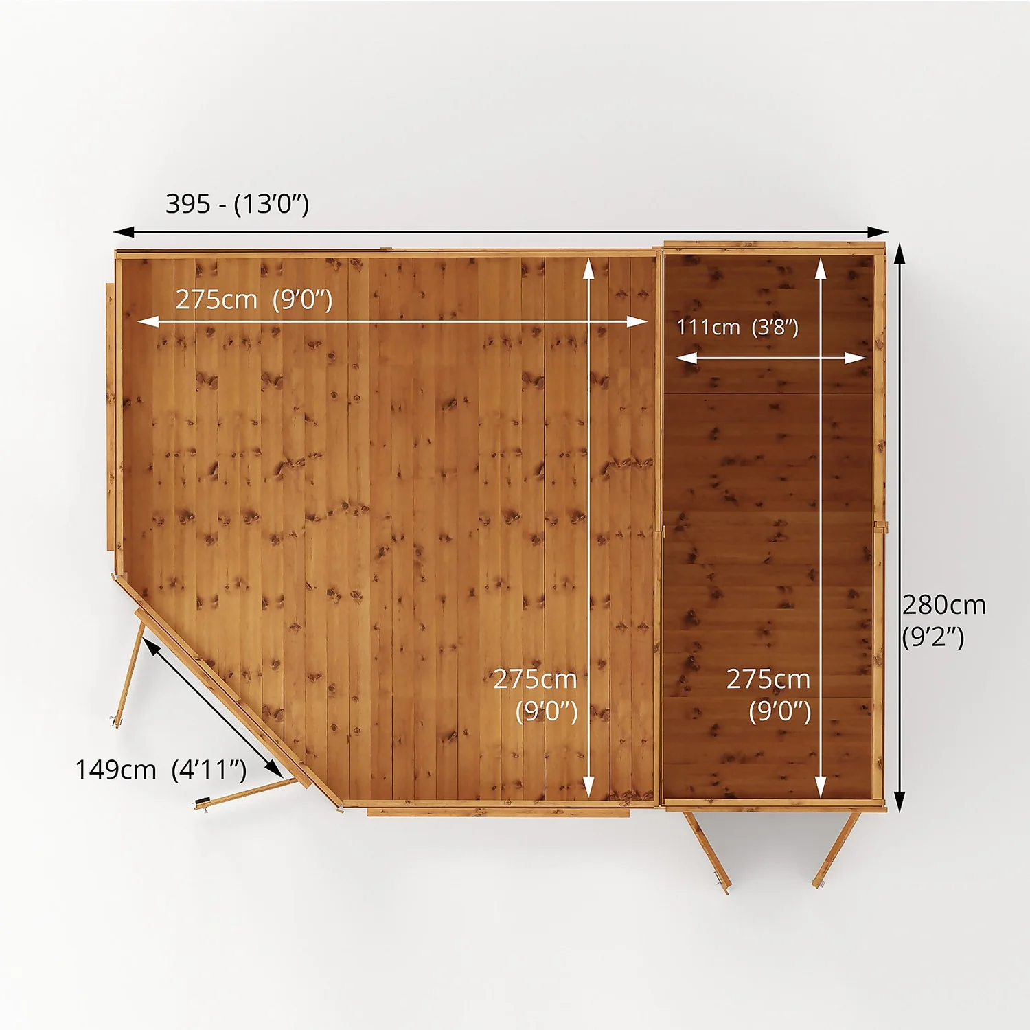 The Ribble corner summerhouse is a unique size summerhouse, ideal for the corner of any garden, great for those looking for somewhere to relax and unwind during the summer months. The spacious and light interior is great for large pieces of furniture, comfy chairs or dining sets, to create the perfect garden retreat. Boasting four large styrene glazed windows and half glazed double doors, the interior is a bright and welcoming.