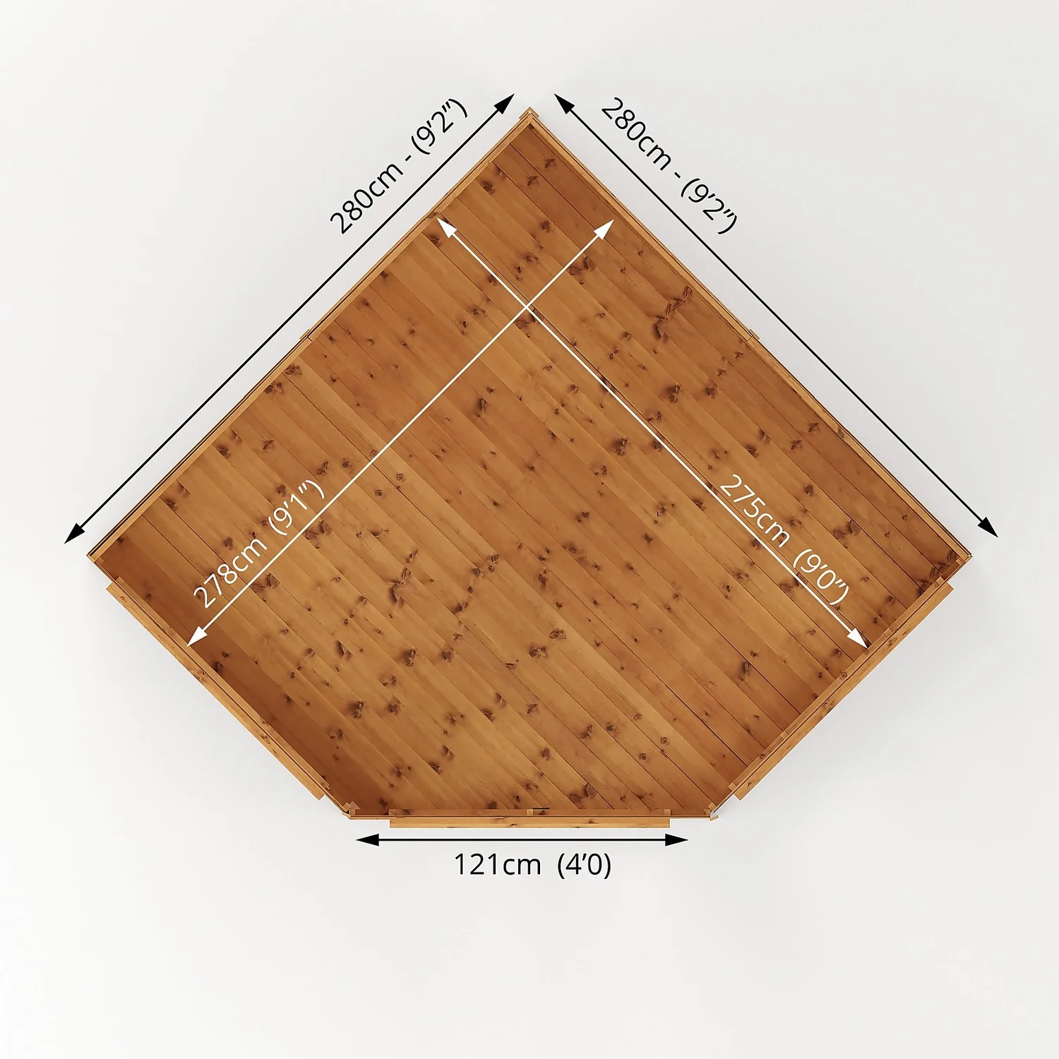 The Ribble corner summerhouse is a unique size summerhouse, ideal for the corner of any garden, great for those looking for somewhere to relax and unwind during the summer months. The spacious and light interior is great for large pieces of furniture, comfy chairs or dining sets, to create the perfect garden retreat. Boasting four large styrene glazed windows and half glazed double doors, the interior is a bright and welcoming.