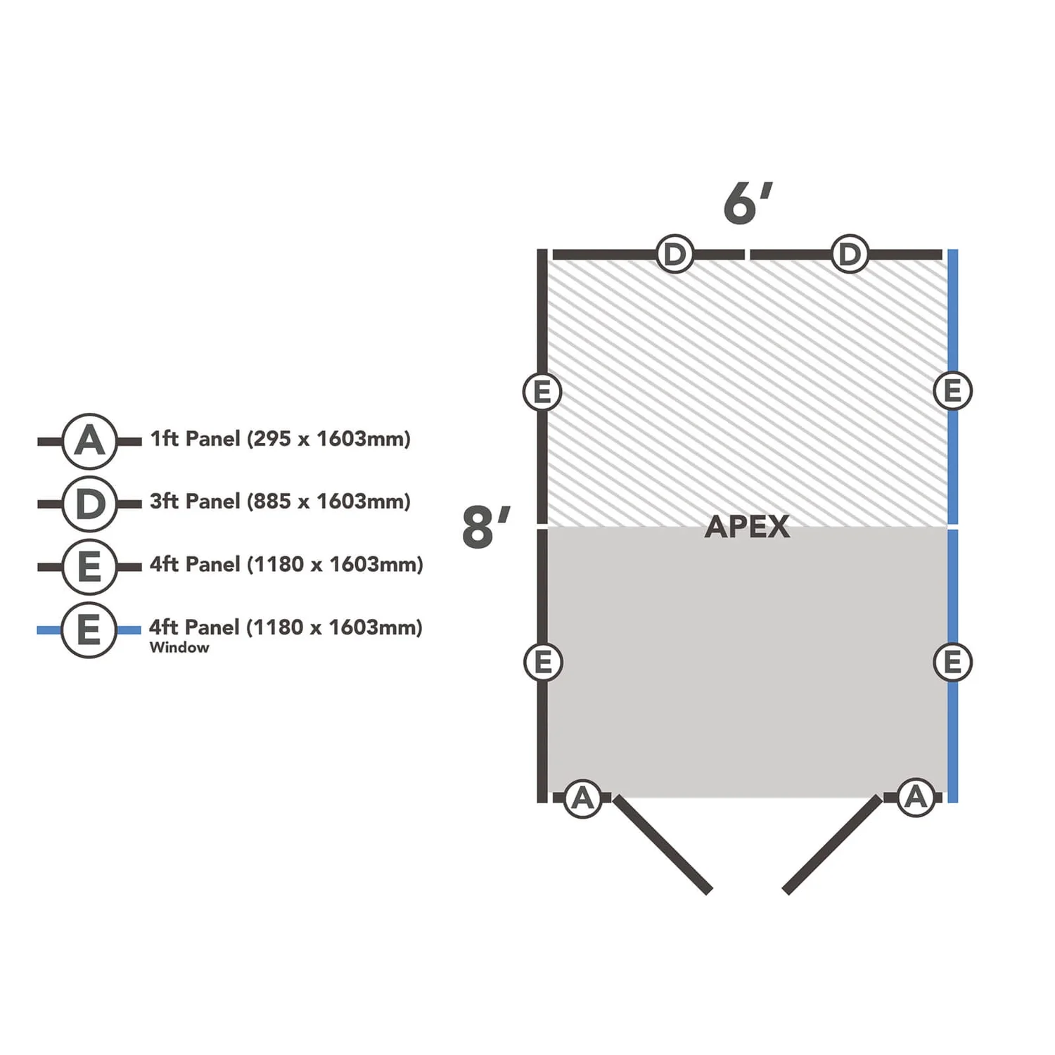 The shed comes with 4 fixed windows, made from shatterproof PET glazing which will not become yellow or brittle over time. This flexible shed is made up of modular sections where same size panels are interchangeable, this means you can build with 4 windows down one side, or 2 windows each side the choice is yours. The roof is made from hard wearing sheet material finished with black sand felt and the shed comes with a sturdy timber floor as standard, ideal for storing heavier gardening equipment and much stronger than more common OSB.