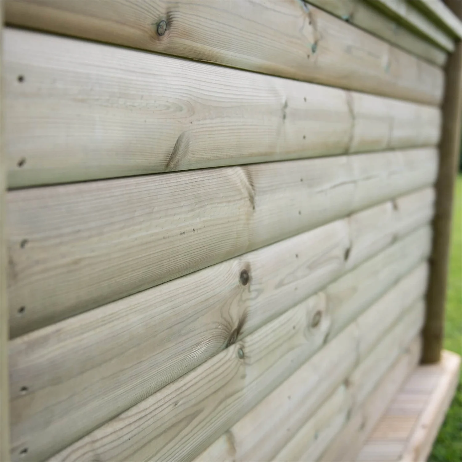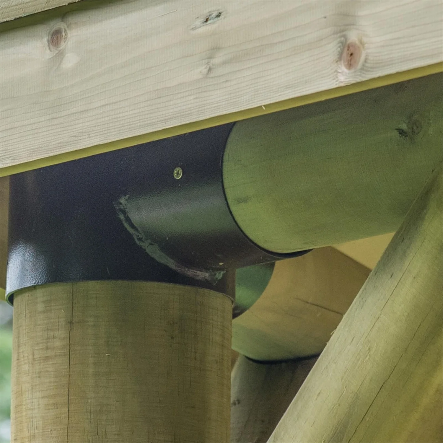This stylish gazebo comes with a thatched roof made from high quality natural South African reed that is layered around the roof for a classic finish. The inside of the roof is fitted with a green, heavy duty, weather-proof, quality outdoor canvas lining. The structure has immense strength and rigidity that is created by the substantial uprights being secured to the profiled deck board base at the bottom and attached with steel brackets to the perimeter frame at the top. Kiln dried, pressure treated round radiata pine is used to make all our gazebo uprights. This timber has an attractive smooth sanded finish and comes with a 15 year anti-rot guarantee.
