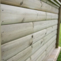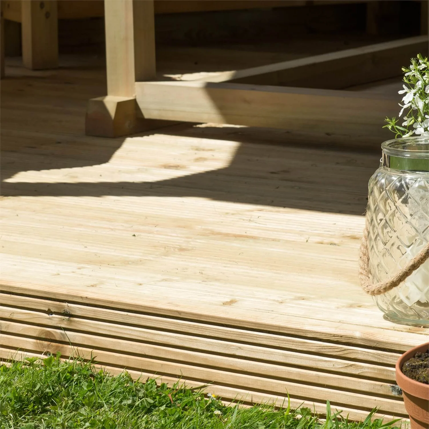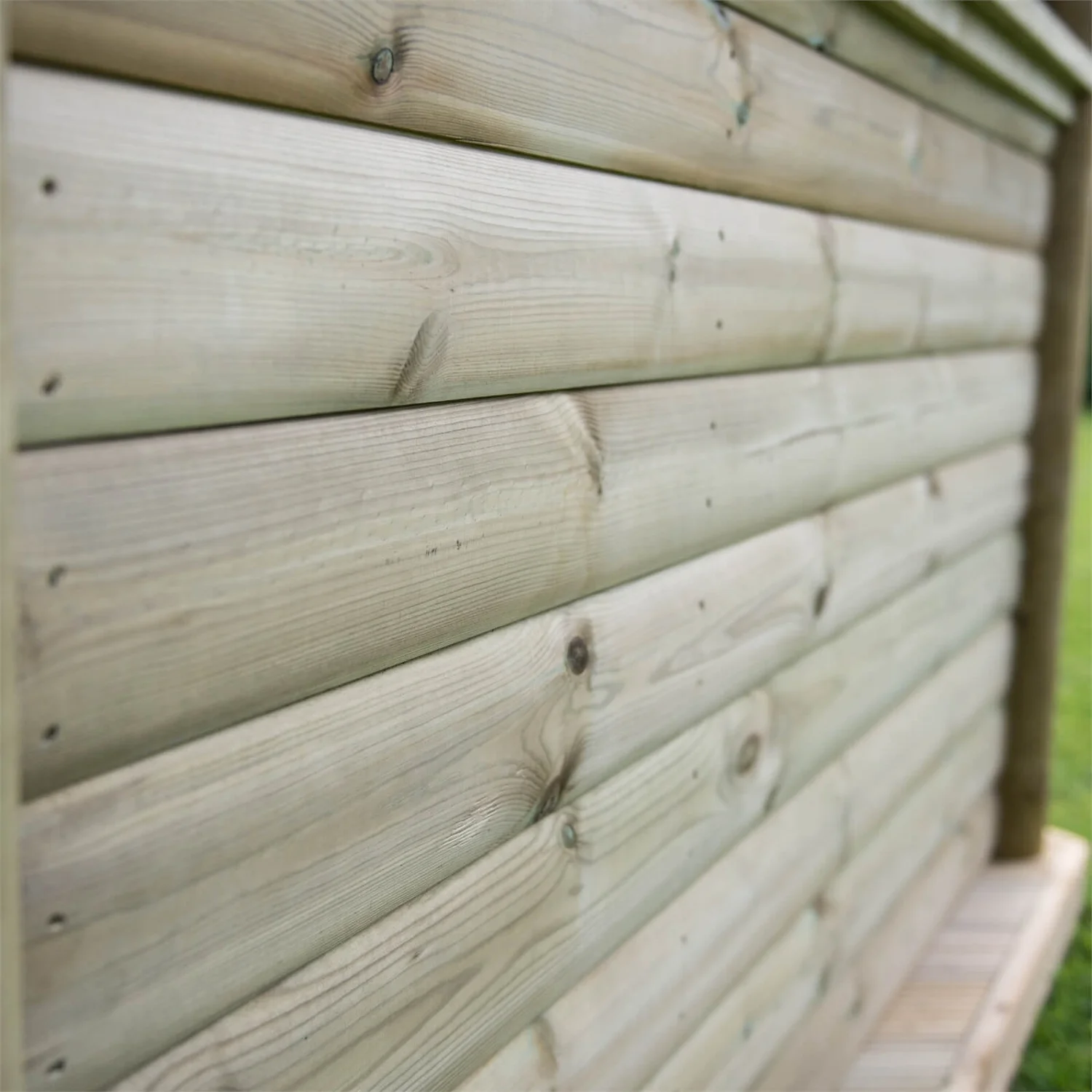 The 3m furnished hexagonal wooden garden gazebo with thatched roof from Forest is the smallest in the range, ideal for gardens with limited space while still creating a striking feature. As well as including custom made bench seats, table and cushions, your gazebo will be installed by our professional team making it easy to create that perfect spot to escape to and grab a moment’s peace. The 5 bench seats will seat up to 10 adults or 12 children and the hexagonal table is perfect for dining or drinks. The comfortable 3-inch deep cushions, made from quality green outdoor canvas, are custom made to fit the corner style benches and include separate back cushions for added comfort. A set of 6 matching green roll-down curtains that offer shade or protection from a light shower are available to purchase separately. This stylish gazebo comes with a thatched roof made from high quality natural South African reed that is layered around the roof for a classic finish. The inside of the roof is fitted with a green, heavy duty, weather-proof, quality outdoor canvas lining. The substantial uprights are secured to the base that features profiled deck boards, while at the top steel brackets secure them to the perimeter frame, giving the gazebo immense strength and rigidity. All our Gazebo uprights are made from kiln dried, pressure treated round Radiata pine, which has an attractive smooth sanded finish. Our timber comes with a 15 Year Anti-Rot guarantee. Hand built in the UK with delivery and installation included. This item is delivered direct to you from one of our suppliers, please see our terms & conditions for more details.
