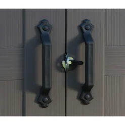 - Elegant wood effect exterior with double doors, plus ventilation grills for air circulation