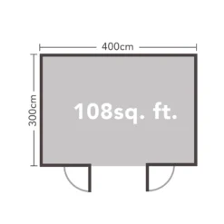 *Unfortunately due to current circumstances we are unable to deliver to the following postcodes BR, CO, CT, DN, DT, EX, HU, IP, LA, NR, PE, PL TA, TN, TQ, TR, YO, all orders will be processed and will be placed on HOLD. Our supplier will be in contact shortly.* The melbury log cabin from Forest’s is big enough to offer multi-use accommodation despite still having a relatively small footprint. With a 4m x 3m footprint returning 10 square metres (108 square feet) of internal floorspace this model is big enough to be used as a two-desk office, a generous hobby room or gym or if you want somewhere to relax in comfort it would even accommodate a sofa suite and TV table or a dining table and chairs. Its pent roof design is unobtrusive, stylish and gives it a modern look.