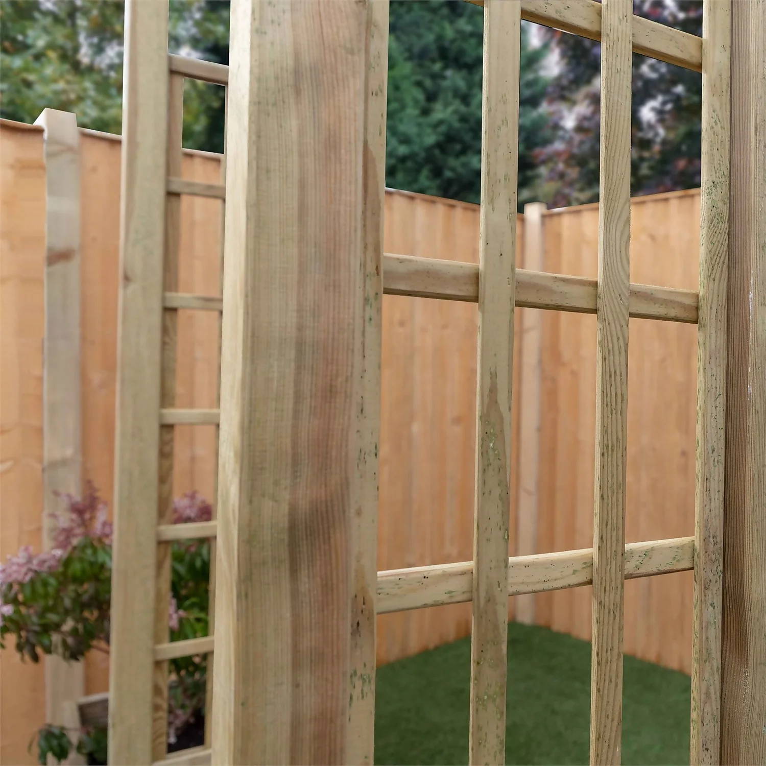 The lattice trellis design on both sides of the arch, makes it perfect for supporting roses and other climbing plants to add some create a beautiful walkway within your garden. The timber for this arch has been pressure treated, meaning high quality preservatives has been forced deep into timber creating a barrier of protection against rot, decay and insect attack, giving you maximum protection and ensuring your arch will look great for years to come. To ensure this and to maintain the 15 year anti rot guarantee we do recommend treating the arch with a waterproof treatment after installation and throughout it’s life. Why not add a splash of colour to make it a real focal point of your garden.