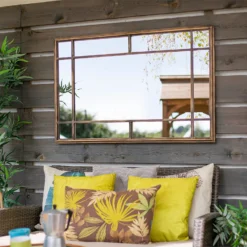 The Milano mirror with its art deco aesthetic would be a beautiful addition to any outdoor space. Constructed from durable steel and glass, the mirror features a waterproof backing and striking geometric shapes that will complement a wide range of garden settings.