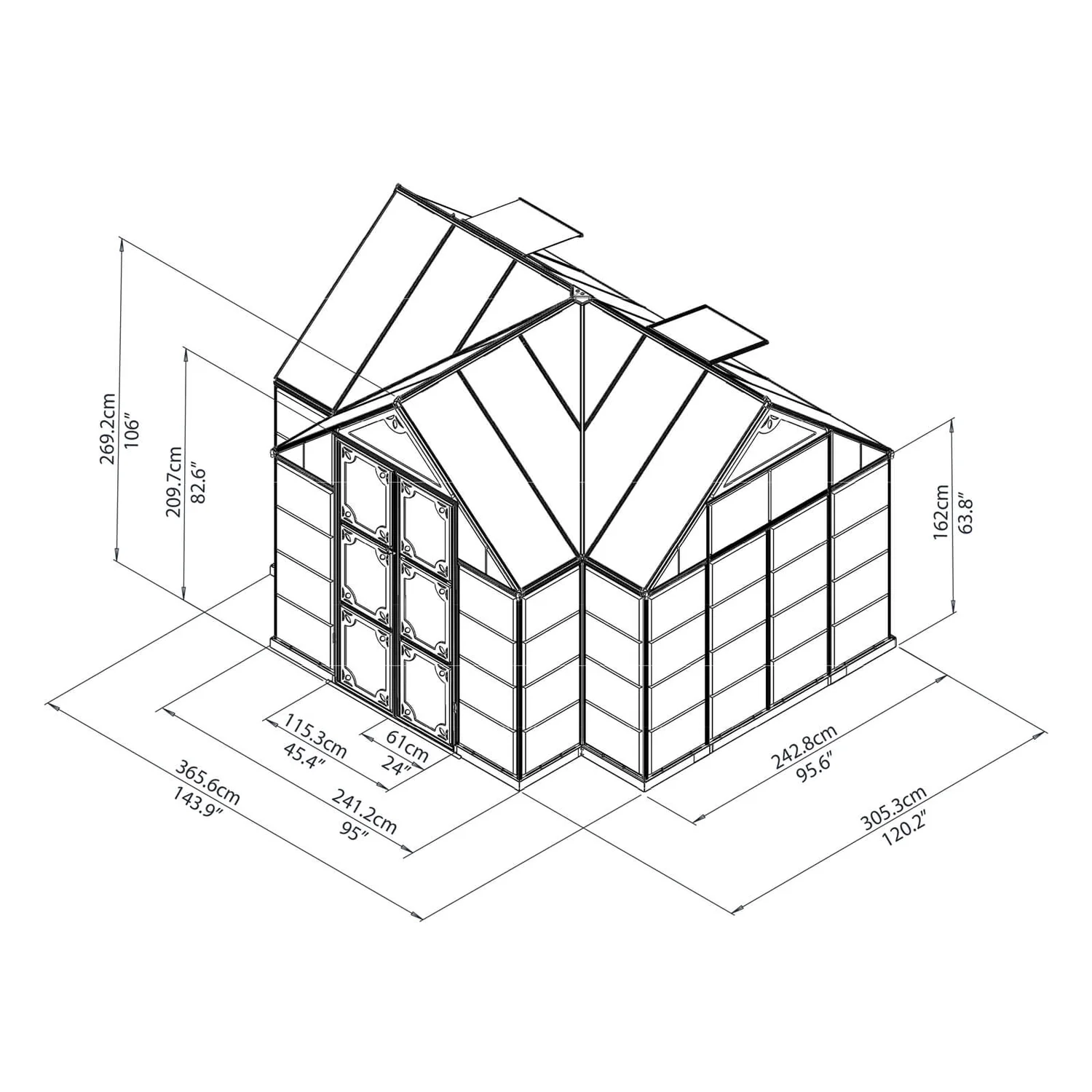 Extend your summer days and enjoy the warmth of the first sun rays. The gorgeous T-shaped spacious cathedral design of the Victory Orangery Chalet greenhouse makes it elegant enough for leisure activities during spring and autumn and roomy enough for all of your gardening projects year-round. Twin-wall roof panels protect from strong sunlight exposure and crystal-clear panel walls provide over 90% light transmission.