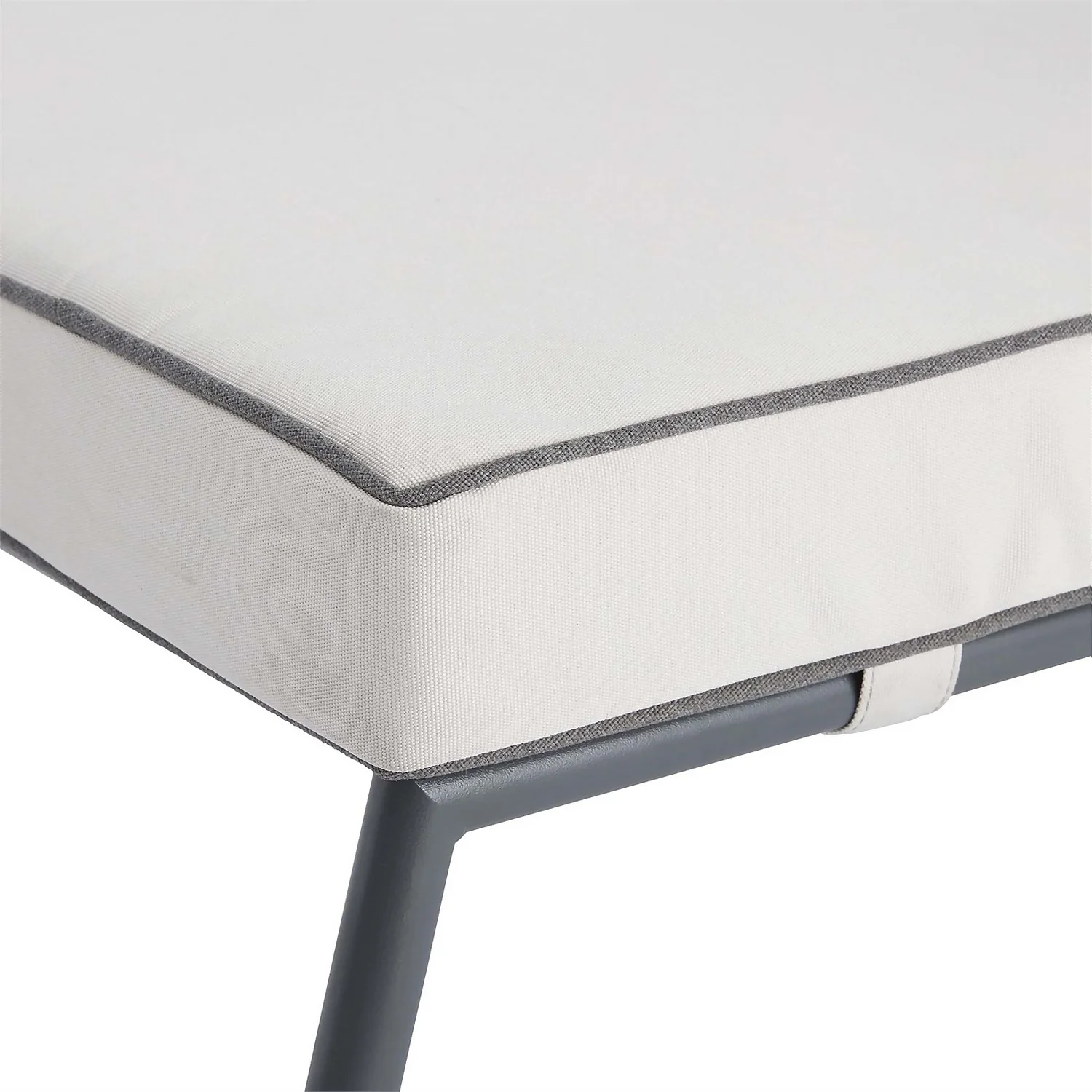 Cushion seat and back for comfort. Weather-resistant fabric. Adjustable lounger function.