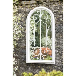 A classic design showcasing an elegant arch which houses an intricate design. This mirror is guaranteed to add depth to your garden, casting the illusion of a real window on your garden wall. Create an eye catching feature with this beautiful Scrolled Arch Mirror.