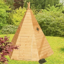 The wigwam playhouse is a unique design, offering as much fun to decorate as it is to play in. An ideal gift at any time of the year, the wigwam will make an amazing and exciting feature in your garden, it is sure to be a conversation piece! This product is tested to EN 71 the European safety standard and carries the CE mark. The door has a full length safety hinge and the fixed windows are glazed with perspex.