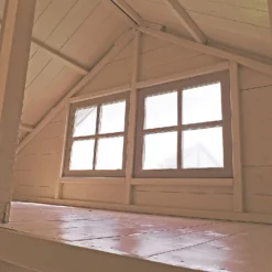 The lodge really is the ultimate playhouse. Your lucky child will proudly give their friends a guided tour of this impressive building, it is a dream house for all children. The lodge creates a stunning feature in your garden as well as providing a substantial playhouse that certainly has the wow factor! The only drawback with The lodge is persuading your child to come out! The lodge has two floors, the upper floor being reached by a small flight of steps for endless fun. The loft area is situated above the veranda so the height of the main space is not compromised. The covered veranda provides cover even on a wet day for year round use as well being an exciting feature.