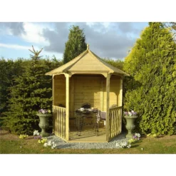 Extremely attractive hexagonal design reminiscent of a pagoda style, the Shire arbour makes a perfect place to sit and relax. This arbour will be a feature in your garden that is sure to attract many compliments! It is manufactured from high grade, slow grown, FSC approved, northern European pine which has been pressure treated to protect it from rot and insect attack for many years. (Imperial dimensions are approximate to the nearest foot; please refer to the exact metric dimensions in the data given). Supplied in its natural pressure treated finish although the arbour can still be painted or stained to suit your garden. Following your order, you will be sent a link to choose your delivery day. On the morning of delivery day you will also receive live tracking information.