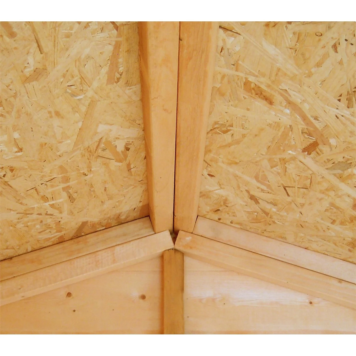 It is constructed on sturdy 34mm square framing and clad with planed Shiplap tongue and groove boards made only from the highest grade, FSC approved, slow grown northern European pine. The floor is T&G and the roof is solid sheet OSB.