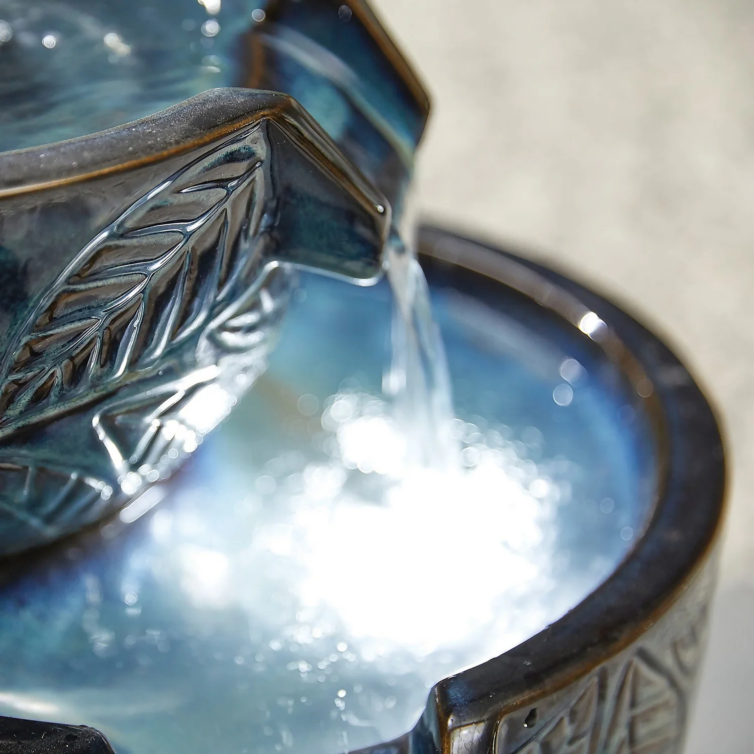 Stylish Fountain Fossil Leaf Water Feature With LEDs