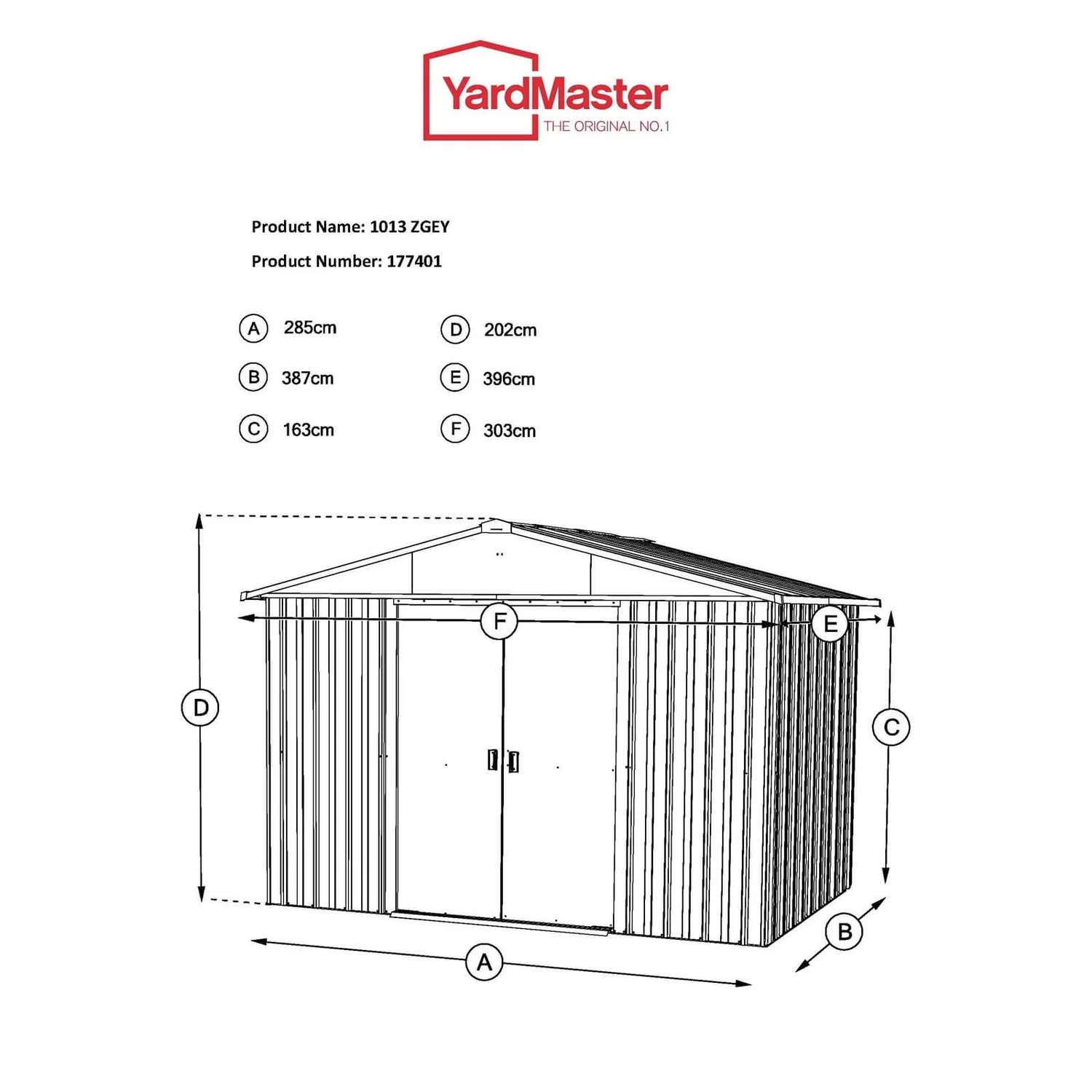The Yardmaster Apex Roof Metal Shed 10ft x 13ft has double sliding doors and offers a practical storage solution for any garden.